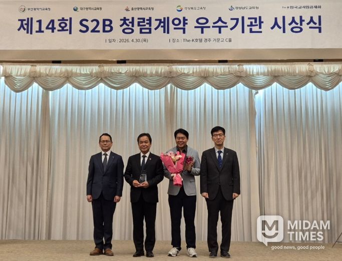 미담타임스 전해찬 기자 | 대구달성교육지원청은 한국교직원공제회가 주관하는 ‘제14회 S2B(학교장터) 청렴계약 우수기관’에 대구에서 유일하게 5년 연속 선정되어 30일 경주 The-K 호텔에서 열린 시상식에서 우수기관상을 수상한다.