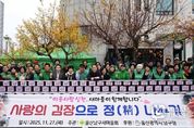 미담타임스 김준완 기자 | 남구새마을회(회장 황병철)는 남구청 후생관 앞 주차장에서 따뜻한 손길이 더욱 필요한 동절기를 맞아 ‘사랑의 김장으로 김장담그기 행사’를 실시했다고 27일 밝혔다. 이번 행사는 26일과 27일 2일간 일정으로 소외되는 이웃이 없는 밝고 인정 넘치는 행복남구 건설을 위해 마련됐고, 남구새마을회(회장 황병철), 남구새마을협의회(회장 서병찬), 남구새마을부녀회(회장 최인순)와 회원 등 150여 명이 참여한 가운데 김장 김치를 담갔다. 서동욱 남구청장도 새마을 지도자와 함께 이웃들에게 따뜻한 정을 나누기 위한 손길을 보탰다. 이날 정성껏 담근 김장김치는 관내 독거노인, 취약계층, 다문화가정, 기초생활수급자 등 400여 세대에 복지시설에 전달할 예정이다. 황병철 남구새마을회장은 “사랑이 담긴 김장 나눔이 이웃들에게 겨울을 따뜻하게 견뎌낼 수 있는 큰 힘이 됐으면 한다” 고 말했다.