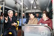 미담타임스 황명수 기자 | 의령군이 27일 의령공영버스터미널에서 ‘버스 완전공영제’ 출범식을 개최하고 본격적인 운영에 돌입했다. 이날 행사에는 박완수 경남도지사와 군민 400여 명이 참석해 경남 최초 완전공영제 시행을 함께 축하했다. 출범식은 경과보고를 시작으로 공영제 전환 과정에 협력한 관계자들에 대한 감사패 수여, 안전운행 다짐 선언, 시승 행사 순으로 진행됐다. 출범식에 앞서 오전 6시 40분, 완전공영제 시행 첫 버스인 ‘의령 빵빵버스’가 운행을 시작했다. 오태완 군수는 첫차에 직접 탑승해 출근길 주민들과 인사를 나누며 현장의 반응을 살폈다. 첫 운행을 맡은 강현석(59) 기사는 “민간 소속에서 군 직영 체계로 새롭게 출발하는 첫날이라 책임감이 남다르다”며 “경남 최초 완전공영제 기사라는 자부심으로 군민을 안전하게 모시겠다”고 말했다. 이날 5년째 첫차로 출근하고 있는 1호 탑승객 홍쌍미(45) 씨는 “버스비가 무료라니 매일 아침 선물을 받는 기분”이라며 “터미널도 깨끗해지고 버스도 새 단장해 이용하기 훨씬 좋아졌다”고 밝혔다. 새벽 운동과 목욕 후 버스