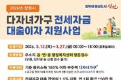 미담타임스 황명수 기자 | 창원특례시는 세자녀 이상 다자녀가구의 전세자금 대출에 대한 이자 부담을 줄이고 안정적인 주거환경을 조성하기 위해 “창원시 다자녀가구 전세자금 대출이자 지원사업”을 시행한다고 밝혔다. 이 사업은 다자녀 가구의 주거비 부담을 완화하고 재정적 지원을 통해 출산율 제고에 기여하고자 시가 추진하는 사업으로, 3월 12일부터 27일까지 읍‧면‧동 행정복지센터에서 접수 받는다. 지원대상은 ▲기준 중위소득 180% 이하 무주택 다자녀가구로서 ▲18세 이하(2007.3.3. 이후 출생)의 자녀가 3명 이상이며 ▲금융기관으로부터 주택 전세자금 대출을 받고 ▲공고일 현재 부모·자녀 모두 창원시에 주소를 두고 있는 가구이며, 이 모든 조건을 충족 시 자격여부 확인을 거쳐 전세자금 대출잔액의 1.5% 이내 최대 100만 원까지 연 1회 지원된다. 다만, 기초생활수급 가구, 공공임대주택 거주 가구, 1촌 직계혈족 및 그 배우자와 임대차계약을 체결한 가구, 2026년 창원시 신혼부부 전세자금 대출이자 지원사업 등 유사 사업으로 이자 지원을 받은 가구는 제외되며, 자세한 사항은 창원시 홈페이지 고시 공고 게시