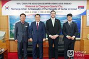 미담타임스 황명수 기자 | 창원특례시는 27일 오전 시청 접견실에서 장금용 창원시장 권한대행이 네마냐 그르비치(Nemanja GRBIĆ) 주한 세르비아 대사를 접견하고, 양국 지방정부 간 교류·협력 방안을 논의했다고 밝혔다. 이번 접견은 창원시와 세르비아 간 상호 이해를 증진하고 향후 실질적인 교류 의제를 발굴하기 위해 주한 세르비아 대사관의 요청으로 마련된 첫 공식 만남이다. 이날 네마냐 그르비치 대사는 창원의 우수한 기술력과 산업 기반에 깊은 관심을 표명했다. 특히 '세르비아가 추진 중인 친환경 에너지 정책 속에서 창원의 기술은 매우 중요한 역할을 할 수 있을 것'이라며 적극적인 협력 의지를 전했다. 이에 장금용 창원특례시장 권한대행은 "창원은 기계, 방산, 원전 등 대한민국 제조업을 견인하는 핵심 산업도시로, 세르비아와의 협력 잠재력이 매우 크다"고 강조했다. 이어서 “이번 방문이 창원과 세르비아 간의 우호 관계를 공고히 하고 미래지향적 파트너십을 구축하는 계기가 되길 바란다"며, “앞으로도 지속적인 소통을 통해 다양한 분야에서 협력 성과가 도출될 수 있도록 노력하겠다”고 밝혔다. 또한 창원시