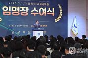 미담타임스 김준완 기자 | 경북교육청은 25일 본청 웅비관에서 2026년 3월 1일 자로 신규 임용되는 유․초․중등 관리직 교육공무원에게 임명장을 수여했다고 밝혔다. 이번 행사는 새로 임명되는 교육장, 교장, 교감, 교육전문직원 등 승진 또는 전직하는 관리직 교육공무원 223명을 대상으로 진행됐다. 임종식 교육감은 신규 관리자들에게 임용장을 수여하며 “학생․교사․학부모가 상호 존중하는 학교문화를 만들기 위해서는 관리자의 역할이 무엇보다 중요하다”라며, “승진과 전직의 기쁨을 누리되, 교육을 바로 세우기 위해 함께 고민하고 소통하는 리더가 되어 달라”라고 당부했다. 이날 새롭게 임용된 관리직 교육공무원들은 각자의 임지에서 따뜻한 경북교육 실현을 위해 책임감을 갖고 헌신할 것을 다짐하며, 새로운 출발을 향한 힘찬 발걸음을 내디뎠다.