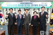 미담타임스 공한별 기자 | 진주시의회 의원 연구단체 ‘진주시 ESG 활성화 연구회’는 21일 올해 연구활동을 마감하는 결과보고회를 열고, 연간 추진 성과와 향후 정책 제언을 공유했다고 밝혔다. 이날 시의회 2층 회의실에서 열린 보고회에는 최지원 대표의원을 비롯해 윤성관·임기향·김형석·최호연 의원 등 연구단체 소속 의원들이 참석했다. 이들은 세계적인 추세인 ESG(환경·사회·지배구조) 경영 요구 확산에 대응해 진주시 행정 전반에서의 ESG 관점 도입, 중소기업 지원 정책 플랫폼 구축 등의 필요성에 뜻을 모았다. 이를 위한 주요 정책 과제로는 ▲지속가능발전목표(SDGs)와 연계한 시정 철학 정립 ▲단계별 ESG 교육·진단·컨설팅 및 인센티브 지원체계 마련 ▲시·공공기관·대학·지원기관이 참여하는 민·관·학 거버넌스 구축 ▲예산·감사·입법 등 지방의회 주요 역할에서의 ESG 평가 관점 강화 등이 꼽혔다. 연구회는 올해 3월 출범 이래 11월까지 기후·탄소중립 정책 강화에 따른 지역 산업 변화와 중소기업의 ESG 대응 현황을 집중적으로 살폈다. 특히 전문가 세미나로 연구의 깊이를 더하면서 경기도의회, 한국ESG평가원,