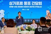 미담타임스 공한별 기자 | 싱가포르를 국빈 방문 중인 이재명 대통령은 1일(현지시간) "재외동포가 차별 없이 존중받고, 또 더 큰 기회를 가질 수 있도록 든든하게 뒷받침해 나갈 것"이라고 약속했다. 이 대통령은 이날 오후 7시 30분쯤 싱가포르 시내 한 호텔에서 열린 동포 만찬 간담회에 참석해 "외교부에 전 세계 동포사회의 민원과 건의 사항을 전수조사하라고 지시했다"면서 이같이 말했다. 이 대통령은 "싱가포르 동포 사회가 2만 5000여 명 규모로 급속히 성장했고, 다양한 동포 분들이 양국 경제와 문화 교류의 가교 역할을 충실하게 잘하고 있다"면서 "양국 수교가 1975년에 이뤄졌는데 싱가포르 한인회는 이보다 앞선 1963년에 설립됐다. 이는 3·1 운동의 핵심 정신인 자주성과도 일맥상통한다"고 평가했다. 아울러 "작년 한국과 싱가포르 양국은 수교 50주년을 계기로 지난 반세기의 성과를 돌아보고 새로운 50년을 준비하는 전기를 만들어냈다"면서 "앞으로 양국은 통상과 투자 분야에서의 협력을 보다 강화하고, 인공지능과 에너지 녹색 전환 그리고 방산 등 미래전략 분야로 그 장을 넓혀가기로 했다"고 강조했다.