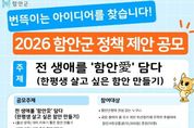 미담타임스 김교환 기자 | 함안군은 지역 발전과 현안 해결을 위해 오는 2월 19일부터 3월 18일까지 ‘2026년 함안군 정책 제안 공모’를 실시한다고 13일 밝혔다. 이번 공모전은 다양한 목소리를 정책에 반영하고, 군정에 대하여 군민이 직접 참여할 수 있는 소통의 장을 마련하기 위해 기획됐다. ‘전 생애를 ‘함안愛’ 담다(부제: 한평생 살고 싶은 함안 만들기)’라는 주제로 창의적이고 실현 가능한 정책을 발굴할 예정이다. 공모주제는 △출산·양육 △지역경제·일자리 △생활·교통 △귀농·귀촌 등 4가지 분야다. 공모에는 함안 군정에 관심 있는 국민 누구나 참여할 수 있다. 접수 방법은 국민신문고 또는 함안군청 누리집 ‘고시·공고’에 있는 제안서를 작성해 함안군청 기획예산담당관으로 방문 또는 우편으로 보내거나, 전자우편으로 제출하면 된다. 접수된 제안은 실시 가능성, 창의성, 계속성 등 종합적인 심사를 거쳐 4월 중 결과를 발표한다. 수상자에게는 금상(100만 원), 은상(50만 원), 동상(20만 원), 장려상(10만 원) 총 4개 부문에서 시상금과 군수 표창이