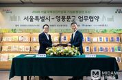 미담타임스 김준완 기자 | 서울시는 2026 서울국제정원박람회 ‘기업동행정원’ 조성을 위해 영풍문고와 업무협약을 체결했다고 밝혔다. 협약식은 2026년 2월 3일 영풍문고 종각종로본점에서 개최됐으며, 김경환 영풍문고 대표이사, 김영환 정원도시국장이 참석했다. 협약에 따라 서울시와 영풍문고는 서울숲 호숫가 서측에 책을 읽을 수 있는 정원을 만들 계획이다. 서울숲 호수와 커뮤니티센터 일대에 ‘책과 함께하는’ 기업동행정원을 조성해 시민들에게 영감을 주는 복합문화정원으로 재탄생시킨다. 영풍문고는 서울국제정원박람회 기간동안 북토크, 시민참여서가 등 책을 매개로 한 다채로운 프로그램을 운영한다. 이를 통해 방문객에게 책과 자연이 어우러진 사유의 경험과 색다른 즐거움을 제공할 예정이다. 특히, 서울숲 커뮤니티센터를 정원책방으로 꾸며 6개월간 운영할 계획이다. 매월 유명 저자 및 문화예술인이 시민들과 소통하는 북토크가 다양한 이벤트와 함께 펼쳐진다. 여행·미학·사유 등 매달 달라지는 테마를 통해 시민들의 일상에 영감을 불어넣는 풍성한 콘텐츠를 선보일 계획이다. 한편, 다양성과 포용을 바탕
