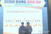 미담타임스 김준완 기자 | 영덕군은 일자리 사업의 중요성을 알리고 우수사례를 공유하기 위해 지난 23일 열린 2025 경상북도 일자리 창출 추진 실적 평가에서 우수상을 받았다. 경상북도는 매년 도내 22곳의 지자체를 대상으로 일자리 고용 지표, 목표 달성도, 지역 여건에 맞는 좋은 일자리 창출, 기관 노력도 등 4개 분야 12개 항목을 평가해 우수 시·군을 선정하고 있다. 이에 영덕군은 ‘좋은 일자리로 살고 머무르는 영덕’이라는 비전으로 지역기업 지원을 통한 일자리, 농림어업 및 문화·관광 산업 활성화를 통한 연계 일자리, 청년·고령인구 일자리 창출 분야의 성과 달성 등의 일자리 사업에서 우수한 평가를 받았다. 이러한 영덕군의 일자리 사업 성과는 2022년부터 올해까지 높은 평가를 받아 일자리 추진 실적에서 4년 연속 수상에 이르는 괄목할 성적을 거두고 있다. 이에 더해 영덕군은 지난 9월 고용노동부가 주최한 ‘2025년 전국 지방자치단체 일자리 대상’에서도 공시제 부문 최우수상을 받아 이번 경상북도 일자리 창출 실적 평가에 이어 겹경사를 맞게 됐다. 황정기 일자리경제과장은 “일자리 사