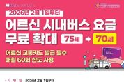미담타임스 김준완 기자 | 울산시가 어르신들의 교통 복지 향상과 이동권 보장을 위해 시내버스 요금 무료화 대상을 70세 이상으로 확대한다. 울산시는 내년 2월 1일부터 민선 8기 후반기 핵심 시책인 ‘울부심 생활+ 사업’의 하나로 추진 중인 어르신 시내버스 무료화 사업의 대상 연령을 기존 75세 이상에서 70세 이상으로 조정한다고 밝혔다. 이에 따라 수혜 대상은 기존 75세 이상 6만 5,000명에서 70세 이상 11만 9,000명으로 늘어나 5만 4,000명이 새로 혜택을 받게 된다. 대상 어르신은 일반 시내버스를 비롯해 울산역 연계 리무진버스를 포함한 직행좌석형 버스, 지선·마을버스 등 울산 지역 전체 노선을 무료로 이용할 수 있게 된다. 무료 혜택을 받기 위해서는 울산시가 발급한 어르신 교통카드를 반드시 사용해야 한다. 카드 미사용 시에는 일반 요금 1,500원(시내 일반버스 카드 기준)이 부과된다. 무료 이용은 월 60회로 제한되며 이는 기존 75세 이상 어르신 교통카드에도 동일하게 적용된다. 다만 환승 횟수는 이용 한도에 포함되지 않는다.
