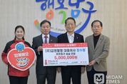미담타임스 김준완 기자 | 울산 남구는 17일 ㈜금영철망 장수철 대표이사가 남구청을 방문해 연말을 맞아 이웃돕기 성금 500만 원을 울산사회복지공동모금회에 지정 기탁했다. 이번에 전달된 성금은 관내 저소득 취약계층을 지원하는 데 사용될 예정으로 연말연시 도움이 절실한 이웃들에게 따뜻한 온기를 전할 것으로 기대된다. 장수철 대표이사는 오랜 기간 지역사회를 위한 나눔을 꾸준히 실천해 왔으며 2022년과 2023년 이웃돕기 성금 기탁, 2024년 고향사랑기부금 기부, 2025년 산불 피해 복구 성금 전달 등 도움이 필요한 순간마다 지역사회와 함께하며 나눔을 생활 속 실천으로 이어오고 있다. 이날 전달식에서 장수철 대표이사는 “지역사회의 일원으로서 이웃들과 따뜻한 겨울을 나누고 싶었다”며 “앞으로도 기회가 닿을 때마다 나눔을 계속 이어가겠다”고 말했다. 서동욱 남구청장은 “여러 해 동안 변함없이 따뜻한 나눔을 실천해 주신 장수철 대표이사께 깊이 감사드린다”며 “기탁해주신 소중한 성금이 꼭 필요한 이웃들에게 잘 전달될 수 있도록 최선을 다하겠다”고 전했다.