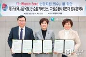 미담타임스 남혜영 기자 | 대구시교육청은 12월 4일 오후 1시 30분, 접견실(본관 2층)에서 ‘E-순환거버넌스’, ‘사단법인 자원순환사회연대’ 등 2곳과 학교 기반 자원순환 체계 구축 및 ESG 환경교육 활성화를 위한 ‘E-Waste Zero, 순환자원 회수’ 업무협약을 체결했다. 이번 협약은 학교 현장에서 발생하는 폐전자제품과 폐휴대폰이 비제도권으로 유출되거나 부적정 처리되는 문제를 예방하고, 개인정보 유출 위험을 차단하는 안전한 회수·재활용 체계를 구축하기 위해 추진됐다. 이를 통해 환경적 가치와 사회적 가치를 동시에 실현하는 자원순환 모델을 학교 현장에 정착시키는 것이 목적이다. 협약에 따라, 대구시교육청은 학교에서 발생한 폐전자제품과 폐휴대폰을 E-순환거버넌스에 인계하고, 회수·재활용 체계에 대한 학교 안내와 홍보, 폐휴대폰 수거 캠페인 교육 협력을 담당한다. E-순환거버넌스는 폐전자제품의 안전한 처리와 친환경적 재활용, 회수·재활용에 따른 ESG 성과 제공, 사회공헌 기부금 영수증 발급 지원을 맡는다. (사)자원순환사회연대는 폐전자제품 회수·재활용 체계 모델 구축과 폐휴대폰 수거 캠