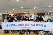 미담타임스 박민정 기자 | 울산광역시교육청은 27일 청사 내 책마루에서 남목중학교 학생을 대상으로 ‘울산교육청 진로 직업 체험의 날’ 3차 프로그램을 운영했다. 이번 프로그램은 학생들이 교육청의 다양한 업무를 현장에서 직접 보고 경험하며, 자기의 적성과 진로를 탐색할 수 있도록 지원하고자 마련됐다. 이번 3차 프로그램에는 남목중학교 학생 19명이 참여해 실무 중심의 현장 체험으로 진행했다. 앞서 10월에 운영된 1차와 2차 프로그램에는 화암고, 방어진고, 울산고 학생이 참여해 다양한 직무를 이해하고 진로 역량을 높이는 활동이 이뤄졌다. 프로그램은 ‘퀴즈로 알아보는 울산교육’, 교육청 시설 탐방, 교육공무원 상담 등 다양한 활동으로 구성됐다. 학생들은 평소 접하기 어려웠던 교육전문직과 교육행정직의 역할과 각 부서 담당자가 울산교육 정책 추진을 위해 수행하는 업무에 대한 설명을 직접 들으며 교육 분야의 폭넓은 진로 세계를 탐색했다. 체험에 참여한 한 학생은 “교육청에서 어떤 업무가 이뤄지는지 구체적으로 알게 되면서 교육공무원 직업에 관심이 생겼다. 앞으로 관련 분야에 도전해 보