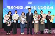 미담타임스 박민정 기자 | 충청북도교육청은 12일, 청주 엔포드호텔에서 '2025. 영유아학교 시범사업 성과공유회'를 성황리에 개최했다. 영유아학교 시범사업 운영 성과를 공유하고, 영유아의 온전한 성장과 발달을 지원하기 위한 현장 중심의 소통과 성찰의 장으로 마련됐다. 이날 행사에는 충북교육청 및 육아종합지원센터 관계자, 영유아학교 시범학교 및 시범사업 운영 기관 교직원 등 약 200명이 참석하여 시범사업 운영 경험을 공유하고 발전 방향을 함께 모색했다. 특히, 변혜경 국공립유치원연합회장, 이옥주 사립유치원연합회장, 성락준 어린이집연합회장이 모두 참석하여 영유아학교 시범사업 운영에 관심을 보였다. 행사는 시범학교 운영기관인 예광유치원 유아들이 선보인 난타공연으로 시작됐으며, 이어 영유아교육 정책 추진에 기여한 교직원에게 유공 표창을 전달했다. 박창현 육아정책연구소 연구원은 '유보통합, 질적 전환의 관점에서 다시 묻다: 최상의 교육‧보육이란 무엇인가?'를 주제로 특강을 진행했으며, 영유아교육의 질 제고와 보육‧교육의 조화로운 방향성에 대해 시사점을 제시했다. 이어, ▲언제나 책봄 이음책
