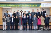 미담타임스 전해찬 기자 | 대구 수성구는 지난달 27일 구청 대강당에서 지역 사회보장 증진과 복지서비스 제공을 위한 민관협력기구인 수성구 지역사회보장협의체(대표) 회의를 개최했다. 이날 대표협의체 위원 27명이 참석해 ▲2026년 운영 계획 보고 ▲동(洞) 지역사회보장협의체 특화사업 심의 ▲제5기 지역사회보장 계획 2025 연차별 시행 결과 심의 ▲제6기 지역사회보장계획 수립 안내 등 주요 안건을 논의했다. 수성구 지역사회보장협의체는 2023년 제10회 ‘희망수성 복지한마당’ 개최 이후, 지난해에는 정책 개발 중심의 ‘희망수성 복지아카데미’로 운영 방향을 조정했다. 다만 주민 참여와 현장 중심의 복지 정보를 제공받을 수 있는 ‘화합과 소통의 장’에 대한 요구가 지속됨에 따라, 올해 10월 24일 수성못 상화동산에서 제11회 ‘희망수성 복지한마당’을 개최할 예정이다. 또한 ‘우리 마을은 우리가 지킨다’는 방향 아래 위기가구 발굴과 지역 현안 해결을 위한 마을건강복지계획을 확대 추진한다. 주민이 주체가 되어 지역 문제를 논의하고 해결 방안을 모색하는 참여형 복지 체계를 강화한다는 방침이다.