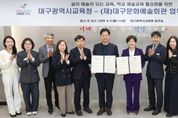 미담타임스 전해찬 기자 | 대구시교육청은 4월 6일 오전 11시, 대구시교육청 접견실에서 (재)대구문화예술회관과 ‘학교 예술교육 활성화’를 위한 업무협약(MOU)을 체결했다. 이번 업무협약은 대구문화예술회관이 보유한 우수한 문화예술 프로그램을 지역 학교 현장에 원활하게 연계·확산하기 위해 마련됐다. 양 기관은 이를 통해 학생들의 예술적 감성을 키우고 교사의 예술교육 역량을 강화함으로써, 학교 예술교육의 내실을 기하는 데 힘을 모으기로 했다. 특히 지역사회의 전문적인 문화예술 인프라를 학교 교육과정과 유기적으로 연결하여, 학생들이 일상 속에서 예술을 즐기고 교육 격차를 해소할 수 있는 환경을 조성할 방침이다. 양 기관은 이번 업무협약을 통해 ▲학생 대상 문화예술교육 프로그램 운영 ▲교사 대상 문화예술교육 역량 강화 연수 운영 ▲문화예술교육 콘텐츠 개발 및 협력 ▲문화예술 프로그램 활성화를 위한 홍보 등 다양한 분야에서 지속적으로 협업을 이어갈 계획이다. 강은희 교육감은 “대구문화예술회관과의 협력으로 우리 미래 세대가 풍부한 예술적 감성을 키울 수 있는 소중한 토대를 마련하게 되어 기쁘