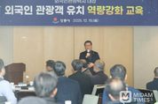 미담타임스 정인화 기자 | 강릉시 15일( 라카이샌드파인 리조트에서 외국인관광택시 운영 관계자들을 대상으로 외국인 관광객 수요 확대에 대응하기 위해'외국인 관광객 유치 역량 강화 교육'을 실시했다. 이번 교육에는 개인택시 관계자 40여 명이 참석했으며, 외국인관광택시 운영 현황을 공유하는 한편, 외국어 응대 및 친절 서비스 향상을 위한 현장 중심의 강의가 진행됐다. 김홍규 강릉시장은 “외국인 관광택시 이용률은 매년 높은 성장세를 보이고 있으며, 이용객 대상 조사 결과 재이용 의향이 90% 이상으로 나타났다.”라며, “기사님들의 친절하고 정직한 서비스가 외국인 관광객에게 강릉에 대한 긍정적인 첫인상을 심어주고 있다”라고 강조했다. 한편 강릉시에 따르면, 2025년 11월까지 강릉시 외국인관광택시를 이용한 외국인 관광객은 총 6,740명으로 집계됐다. 이는 2019년 시행 이후 도내 이용 실적 1위를 지속적으로 유지하고 있는 성과로, 전국 지자체 가운데서도 외국인 관광객 이동 편의 증진의 모범 사례로 소개되는 등 높은 경쟁력을 인정받고 있다.