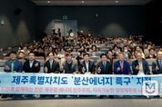 미담타임스 정인화 기자 | 제주특별자치도가 분산에너지 특화지역을 발판 삼아 ‘제주형 분산에너지 모델’을 구축하고, 도민이 참여하고 혜택을 공유하는 ‘에너지 주권 시대’를 본격적으로 열어간다. 제주도는 18일 오후 4시 제주문학관 대강당에서 ‘도민과 함께하는 미래 토론회’를 열고, 분산에너지 특화지역 지정 이후 제주형 분산에너지 모델의 발전 방향과 실행 과제를 도민과 함께 모색했다. 이번 토론회는 제주 전역이 분산에너지 특화지역으로 최종 지정된 뒤 처음 마련된 공식 논의의 장이다. 도민과 전문가, 공공기관, 기업 관계자 등 100여 명이 참석해 제주 에너지 전환과 에너지 주권 실현에 대한 뜨거운 관심을 보였다. 토론회는 발제와 라운드테이블, 청중 질의응답 순으로 진행됐다. 분산에너지 특화지역 지정의 의미를 공유하고 에너지 생산·소비 구조를 도민 중심으로 전환하기 위한 제주 에너지 대전환의 중·장기 전략을 집중 조명했다. 김남진 제주도 혁신산업국장은 ‘제주형 분산특구 지정과 의미’를 주제로, 분산특구 지정의 추진 배경과 과정, 기대효과를 소개했다. 김 국장은 제주형 분산에너지 특화지역이 재