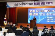 미담타임스 정인화 기자 | 충청북도는 12월 8일 오송 C·V센터에서 충북경제사회연구원, 오송첨단의료산업진흥재단, 충북산학융합원, 충북창조경제혁신센터, 충북연구원과 함께 ‘오송 K-바이오 스퀘어 활성화 방안 종합토론회’를 개최했다. 이번 토론회는 새 정부의 K-바이오 정책 방향을 공유하고, 오송이 대한민국 바이오산업의 핵심 거점으로 도약할 수 있도록 K-바이오 스퀘어 조성 전략을 모색하기 위해 마련됐다. 첫번째 발제에서 이규선 한국생명공학연구원 연구전략본부장은 새 정부가 제시한 5대 바이오 강국 실현 전략과 AI 기반 바이오 R·D 추진방향을 소개하며, K-바이오 스퀘어의 핵심주체인 KAIST, 서울대병원, 한국생명공학연구원이 힘을 모으면 AI바이오 시대 패러다임 변화 선도, 5대 바이오 강국 실현에 획기적인 기여가 가능하다고 설명했다. 두 번째 발제에서 김도현 삼정KPMG 이사는 오송생명과학단지에 추진 중인 서울대병원 R·D 임상병원 조성 계획을 소개했다. R·D 임상병원은 K-바이오 스퀘어 R·D 결과물에 대한 중개임상을 통해 연구개발-임상-사업화로 이어지는 전주기 체계가 완성을 목적으로 하