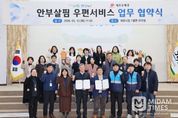 미담타임스 정인화 기자 | 제주시는 3월 10일 시청 1별관 회의실에서 제주우체국(국장 오달규)과 ‘안부살핌 우편서비스’ 업무 협약을 체결했다. 이날 협약은 김완근 제주시장과 제주우체국장 등 15명이 참석한 가운데 우편서비스를 활용해 지역 내 촘촘한 사회안전망을 구축하기 위해 마련됐다. 이번 협약에 따라 제주시는 지역 내 고립가구 중 집중관리가 필요한 대상 가구를 발굴하고, 안부 확인과 물품 제공, 모니터링, 배달 정도 회신에 따른 사후관리를 진행한다. 또한 제주우체국은 관리가 필요한 고립가구에 물품을 배송하고 안부 확인 결과를 회신하며 긴밀히 협력한다. 한편 제주시는 지난해 사랑배달 복지등기우편 1,754건을 발송하고, 현장방문을 통한 위기조사를 진행한 바 있다. 김완근 제주시장은 “제주 지역 중장년 1인 가구가 증가하고 고독사도 늘어나는 추세여서 사회안전망 강화와 대응책 마련이 시급하다”며, “집중 관리가 필요한 고립가구에 더욱 촘촘한 사회안전망이 형성되길 바란다”고 말했다. 이어 “시민 누구도 소외되거나 고립되지 않도록 꼼꼼히 살피겠다”고 덧붙였다.