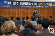 미담타임스 정인화 기자 | 전라남도와 광주광역시의 행정통합이 법제화되며 ‘호남권 메가시티’ 실현이 가시화되는 가운데, 목포시가 통합 이후 지역의 미래 청사진을 마련하기 위한 선제적 대응에 나섰다. 시는 지난 9일 시청 회의실에서 전 직원을 대상으로 '전남·광주 행정통합 대응 공직자 역량강화 교육'을 실시했다. 이번 교육은 지난 3월 5일 국회 의결을 거쳐 공포된 '전남광주통합특별시 설치를 위한 특별법'에 따라 오는 7월 통합특별시 출범을 목표로 추진되고 있는 행정통합에 체계적으로 대비하기 위해 마련됐다. 이날 교육은 전남연구원 김대성 상생협력단장이 강사로 나서 ‘전남광주 통합특별법의 구조와 주요 내용’과 ‘통합 이후 지방정부 역할 변화 및 목포시의 전략적 대응 방향’을 중심으로 설명하고 질의응답을 진행했다. 특히 전남·광주 행정통합 추진 과정과 특별법에 담긴 주요 특례 사항을 살펴보고, 향후 행정·재정·권한 구조 변화에 대비해 지방정부가 준비해야 할 과제와 전략 방향을 공유했다. 아울러 목포항을 중심으로 한 해양·물류 기능, 해상풍력 및 재생에너지 산업, 수산·해양 산업, 해양·문화관광 산업 등 목