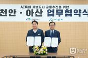 미담타임스 정인화 기자 | 천안시가 아산시와 손잡고 국토교통부 주관 ‘K-AI 특화시범도시’ 조성사업 유치에 본격적으로 나선다. 천안시는 지난 5일 천안아산상생협력센터에서 김석필 천안시장 권한대행 부시장과 오세현 아산시장이 참석한 가운데 ‘AI 특화 시범도시 공동 추진 업무협약’을 체결했다고 6일 밝혔다. 이번 협약은 정부의 인공지능 전환(AX) 기조에 맞춰 양 시의 공동 생활권 기반을 활용, 충청권의 강력한 AI 혁신 거점을 구축하기 위해 마련됐다. 특히 천안시는 아산시와 도시통합관제센터를 공동 운영 중인 상생 모델을 바탕으로 이번 공모에서 강력한 시너지 효과를 창출한다는 전략이다. 국토부의 ‘K-AI 특화시범도시’는 2030년까지 △GPU·NPU를 탑재한 ‘도시지능센터’ 구축 △지능형 SOC 등 AI 기반시설 확충 △기존 인프라(교통·안전·행정)의 AI 고도화 △실증 플랫폼인 ‘AI 빌리지’ 등을 추진하는 대규모 프로젝트다. 천안시는 아산과 이미 천안아산상생협력센터 내 도시통합관제센터를 공동 운영하는 등 긴밀한 협력 체계를 유지해 온 만큼, 이번 공모에서도 공동 대응을 통해 시너지