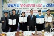 미담타임스 정인화 기자 | 고창군이 지난 17일 2025년 하반기 민원·국민신문고 응대 우수공무원을 선정해 시상식과 간담회를 열었다. 민원처리 우수공무원은 각 분야별로 5명씩을 선정하여 표창을 수여했다. 먼저, 국민신문고 분야는 민원처리 건수, 담당자의 민원요지 파악, 성실한 답변 등을 평가했다. 서민지 주무관(도시디자인과), 김민경 주무관(환경위생과), 고민성 주무관(사회복지과), 박재규 주무관(종합민원과), 유혜령 주무관(문화예술과)이 선발됐다. ‘민원처리 마일리지 분야’는 처리기간이 2일 이상인 법정 민원에 대해서 단축 일수를 마일리지로 적립해 누적 점수가 높은 공무원을 선정했다. 남혜원 주무관(사회복지과), 이민해 주무관(환경위생과), 송서경 주무관(신활력경제정책관), 전필규 주무관(사회복지과), 배재영 주무관(해양수산과)이 선정됐다. 고창군수는 시상식 이후 민원 처리 우수공무원들의 애로사항과 건의 사항을 청취했다. 고창군수는 “국민신문고 민원 처리와 민원 실적은 단순한 처리 건수를 넘어 국민의 불편 해소와 ‘신뢰받는 행정 구현’에 중요한 지표다”며, “