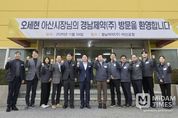 미담타임스 정인화 기자 | 아산시가 24일 신창면에 위치한 경남제약㈜ 아산공장을 방문해 현장 소통을 강화하며 ‘기업을 섬기는 도시’ 행보를 이어가고 있다. 경남제약은 국내 대표 제약기업으로, ‘레모나’로 상징되는 강력한 브랜드 경쟁력을 기반으로 이너뷰티·건강기능식품 시장에서 지속적인 성장을 이어가고 있다. 특히, 경남제약 아산공장 내 제조시설 증축 및 신규 설비 도입을 위해 총 60억 원 규모의 투자를 추진 중이다. 이를 통해 인태반 추출 설비, 외용액제 제조시설 등을 확충하고 25명의 신규 일자리를 창출할 계획이다. 이날 오세현 시장을 비롯한 시 방문단은 생산시설을 살펴보고 기업 애로사항을 청취하는 간담회를 가졌다. 간담회에서는 △제조시설 확충을 위한 인허가 지원 △지역 우수 인재 채용 확대 △지역 농산물 활용 협력 △아산페이·공공배달앱 ‘땡겨요’ 홍보 연계 등 다양한 상생 방안이 논의됐다. 조정영 경남제약 대표이사는 “68년 된 향토기업을 찾아주셔서 감사하다”고 환영하면서도 “다만 시민들이 우리가 아산의 기업이라는 걸 많이 모르는 점이 아쉽다”고 피력했다. 그는 이어 “
