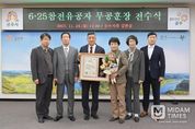 미담타임스 정인화 기자 | 공주시는 지난 24일 시청 집현실에서 6·25전쟁에 참전해 용감하게 헌신하고 공을 세운 고(故) 이재설 중사의 유가족에게 무공훈장과 훈장증을 전달했다고 밝혔다. 고(故) 이재설 중사는 6·25전쟁 당시 제6보병사단 소속으로 주요 전선에서 혁혁한 전공을 세워 1950년 화랑무공훈장 수여가 결정됐으나, 전쟁기의 혼란으로 실물 훈장이 전달되지 못한 채 75년 동안 미전수 상태로 남아 있었다. 전쟁 이후에도 군 복무를 이어간 고인은 소령으로 제대했으며, 이번 전수는 육군본부가 추진 중인 ‘6·25전쟁 무공훈장 주인공 찾기 캠페인’을 통해 유가족을 확인하면서 이뤄졌다. 이날 전수식에는 유족 대표인 자녀 이제남 씨를 비롯해 자녀와 외손자가 참석했으며, 이제남 씨가 훈장과 훈장증을 전달받았다. 이제남 씨는 “오랜 세월이 지나서야 아버지의 공적이 공식적으로 인정받게 되어 감회가 깊다”며 “훈장을 받는 순간 참전 당시의 희생과 헌신을 다시 떠올리게 됐다”고 말했다. 최원철 시장은 “국가를 위해 헌신한 참전용사의 숭고한 희생을 깊이 기린다”며 “앞으로도 보훈가족 예우와 지원을
