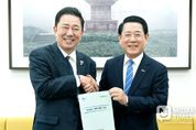 미담타임스 정인화 기자 | 김영록 전남도지사는 19일 국회에서 김병기 더불어민주당 원내대표와 한병도 국회 예결위원장을 잇따라 만나 전남 핵심 현안의 필요성 설명하고 2026년 국비 증액 반영을 위해 적극적인 지원을 요청했다. 이날 국고 확보 활동은 2026년 예산심사와 주요 법률 논의가 본격화되는 시기에 전남의 미래가 걸린 핵심 사업을 반영하기 위해 전략적으로 이뤄졌다. 김영록 지사는 “지금이 전남의 미래 성장동력을 국가정책에 담아낼 골든타임”이라며 절박함을 전했다. 김병기 원대대표를 만난 자리에선 ▲세계적 인기를 누리는 김 산업을 체계적으로 육성하기 위한 ‘국립 김산업진흥원’ 설립 ▲전국 유일 의대 없는 전남의 의료공백 해소를 위한 통합대학교 국립의대 2027학년도 정원 배정 ▲재생에너지 기반 RE100산단과 배후도시를 조성하기 위한 ‘재생에너지자립도시 특별법’ 연내 제정 ▲여수 석유화학·광양 철강산업의 구조전환을 지원하기 위한 ‘석유화학·철강산업 특별법’ 제정 ▲전남이 에너지 대전환을 선도하기 위해 필요한 권한과 특례를 담은 ‘전남 에너지·해양 특화도시 특별법’ 제정 등을 건의했다. 김영록 지사