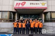 미담타임스 정인화 기자 | 이재영 충북 증평군수가 9일 ‘제63주년 소방의 날’을 맞아 증평소방서를 방문해 119 재난 대응과 군민 안전을 위해 헌신하고 있는 소방공무원들을 격려했다. 이날 이 군수는 화재·구조·구급 등 현장에서 위험을 무릅쓰고 군민의 생명과 재산을 보호하기 위해 노력하는 소방대원들에게 감사의 뜻을 전하고, 근무환경 및 애로사항 등을 청취하는 시간을 가졌다. 이 자리에서 이 군수는 “보이지 않는 곳에서 24시간 군민의 안전을 지키는 여러분의 노고는 그 어떤 말로도 다 표현하기 어렵다”며 “군민을 대표해 깊은 감사와 존경을 전한다”고 말했다. 이어 “증평군도 소방 인력과 장비 확충, 재난 대응체계 강화 등 안전한 도시 조성을 위해 지속적으로 지원을 아끼지 않겠다”고 강조했다. 한편, 군은 화재 취약시설 안전점검, 주택용 소방시설 보급 확대, 의용소방대 활동 지원 등을 통해 지역 안전망을 강화하고 있으며, 특히 동절기 화재 예방을 위한 선제적 대응체계 마련에 힘쓰고 있다. 이재영 군수는 “군민의 안전을 최우선 가치로 삼은 소방대원들의 헌신이 지역사회 안전 문화 정착의 큰 기