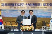 미담타임스 정인화 기자 | 제주특별자치도가 재생에너지 활용 과정에서 발생하는 전력 불균형 문제를 해소하기 위해 인공지능(AI) 기반 전력중개 플랫폼 기업 브이젠㈜과 협력한다. 제주도는 15일 오후 4시 30분 도청 백록홀에서 브이젠㈜과 신설 투자 및 신규 채용 등을 주요 내용으로 하는 투자협약을 체결했다. 협약식에는 오영훈 제주도지사와 경제활력국장, 기업투자과장, 분산에너지정책팀장, 대외협력특보, 에너지특보 등 도 관계자와 백승엽 브이젠 대표, 김규태 이사, 김명진 프렌드투자파트너스 상무 등이 참석했다. 브이젠은 인공지능(AI) 기술로 전력 생산량과 수요를 실시간으로 예측·조절하는 전력중개 플랫폼 기업이다. 전국 곳곳에 흩어진 태양광 발전소, 전기차 배터리, 건물 에너지저장장치(ESS) 등을 하나의 가상발전소(VPP)처럼 통합 운영하는 기술을 보유하고 있다. 날씨에 따라 생산량이 들쭉날쭉한 재생에너지를 AI가 예측하고 조절해, 안정적으로 전기를 공급하고 거래할 수 있게 만드는 게 핵심이다. 본사를 JDC 스마트빌딩으로 이전해 제주를 거점으로 사업을 전개하고 있으며, 2027
