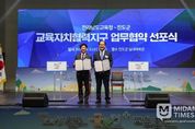 미담타임스 정인화 기자 | 진도군은 지난 11월 5일에 전라남도교육청과 ‘전라남도 교육자치협력지구 운영 업무협약’을 체결했다고 밝혔다. 이번 협약식은 진도교육지원청에서 주최하는 ‘2025 보배섬 진도 글로컬 교육축전’이 열리고 있는 진도실내체육관에서 진행됐으며, 김희수 진도군수, 김대중 전라남도교육감, 박금례 진도군의회의장과 군의원, 전라남도교육청과 진도교육지원청 관계자, 학부모, 학생들이 참석했다. 이번 협약은 지역사회와 학교가 함께 성장하는 지속 가능한 교육생태계를 구축하는 것을 목표로 한다. 업무협약의 주요 내용은 ▲교육 발전과 지역교육 활성화를 위한 상호 협력 ▲교육자치협력지구 사업의 행‧재정적 지원 ▲지역 인재 육성 프로그램 공동 추진 등으로 협약은 2026년부터 2029년까지 4년 동안 유지된다. 김희수 진도군수는 “민선 8기 군정 방침인 ‘인재를 키우는 교육’을 실현하기 위해 인재육성 장학사업과 교육경비 예산을 대폭 확대하고 있다”라며, “앞으로도 교육청과 협력해 학생들이 마음껏 꿈을 펼칠 수 있는 교육환경을 조성하겠다”라고 말했다. 이어 “진도는 대몽항쟁과 명량대첩의 역사