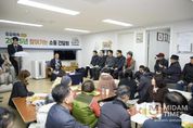 미담타임스 정주환 기자 | 여주시는 지난 12월 12일, 점봉동 부영아파트 경로당에서 통장 및 아파트입주민, 관계 공무원 등 50여명이 참석한 가운데 ‘찾아가는 아파트 주민간담회’를 개최했다. 이번 간담회는 그동안 자연마을에 비해 상대적으로 시정 참여 기회가 적었던 공동주택(아파트)을 여주시장이 직접 방문하여 시민과의 소통을 한층 강화하고, 입주민들의 생활 불편사항을 해소함은 물론 지역 현안에 대한 다양한 의견을 폭넓게 청취하기 위해 마련됐다. 여주시 점봉동에 위치한 부영아파트는 6개동 810세대로 이루어져 있으며 2000년에 준공된 아파트 단지이다. 이날 간담회에서는 시정 안내·홍보사항으로 시에서 추진 중인 다양한 사업에 대한 설명이 이뤄줬다. 특히 신청사 건립과 관련하여 건립 필요성과 부지 선정 과정에서의 공론화 과정, 추진 현황 및 향후 건립 계획에 대해 상세히 안내했으며, 원도심 활성화 정책과 도시재생사업 등 주요 시정방향을 공유하며 입주민들과 공감대를 형성하는 가졌다. 또한 간담회에서 참석자들은 경로당 운영 지원 보조금 상향, 경로당 식사 도우미 활성화, 노인일자리사업의 안정적 추진 및 확