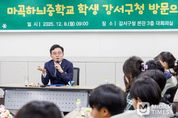 미담타임스 정주환 기자 | 진교훈 서울 강서구청장이 8일 구청 대회의실에서 마곡하늬중학교 3학년 학생들과 직접 대화하며 소통하는 시간을 가졌다. 구는 행정이 어떻게 이뤄지고, 공무원이 어떤 역할을 하는지 학생들이 현장에서 직접 체험하며 이해할 수 있도록 이날 자리를 마련했다. 3학년 1반과 4반 학생 40여 명이 구청을 찾아 진 구청장과 만났다. 진 구청장은 “구청에 직접 와보니깐 어때요?”라고 질문을 하며 대화를 이끌어갔다. 학생들의 장난스러운 질문에도 유쾌하게 답변했고 대화 내내 웃음이 끊이지 않았다. 길거리 흡연 등 생활불편부터 강서구의 주요 정책과 예산 규모, 10년 후 강서구에 필요한 정책에 이르기까지 폭넓게 대화했다. 진 구청장은 “마곡지구 발전과 맞물려 유동인구가 많아짐에 따라 간접흡연 피해 민원도 늘고 있다”며 “흡연 단속과 계도를 병행해 피해를 줄여나가겠다”고 말했다. 마곡 통합신청사와 신경제축 조성 등 굵직한 사업에 대해서는 학생들의 눈높이에 맞춰 알기 쉽게 설명했다. 10년 후 정책에 대해선 “변화의 속도가 매우 빠르기 때문에 기술의 발달을