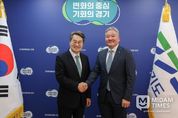 미담타임스 정주환 기자 | 김동연 경기도지사가 내년 1월 스위스 다보스에서 열리는 세계경제포럼(World Economic Forum, WEF) 2026 연차총회(다보스포럼)에 3년 연속 공식 초청됐다. 이주옥 WEF 아시아·태평양국장은 1일 경기도를 방문해 초청장과 프로그램 일정을 김 지사에게 직접 전달했다. 2026 세계경제포럼 연차총회는 1월 19일부터 23일까지 스위스 다보스에서 ‘대화의 정신(A Spirit of Dialogue)’을 주제로 열리며, 트럼프 미국 대통령을 비롯해 주요 국가 정상과 글로벌 기업인 등 3천여 명이 참석할 것으로 예상된다. 김동연 지사는 WEF의 초청에 감사의 뜻을 전하며, “‘대화의 정신’이라는 주제는 관세·무역, 경제·산업구조 변화, 인공지능 경쟁, 지정학 갈등 등 복합적 난제를 마주한 국제사회에 매우 시의적절하다”고 평가했다. 또한, “기후·AI 등 인류 공동의 도전과제에 대한 협력뿐만 아니라, 경제·산업 분야에서 급변한 현실을 기반으로 새로운 질서를 모색하는 논의가 더욱 중요해지고 있다”며 “경기도도 글로벌 의제 논의에 기여할 수 있는 부분을 WEF와 함께