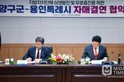 미담타임스 정주환 기자 | 용인특례시는 6일 강원특별자치도 양구군과 자매결연을 하고, 두 도시의 교류와 발전을 위해 적극 협력하기로 했다. 이상일 시장은 이날 양구군청 중회의실에서 서흥원 군수와 두 도시 간 우의를 증진하고 상호 교류‧협력하는 데 합의하고, 자매결연 협약서에 서명했다. 이번 협약으로 양구군은 시의 16번째 자매도시가 됐다. 이상일 시장은 “양구는 문화예술 분야에서 과감한 투자를 하고 있고, 양구군립박수근미술관은 2023년 양구 출신 박수근 화백의 1956년 작품 ‘가족’을 품었는데 두 도시가 앞으로 가족처럼 잘 지냈으면 한다”며 “이번 협약을 계기로 양 도시가 협력을 강화해서 함께 발전하길 기원한다”고 말했다. 이 시장은 “양구군과 용인시의 훌륭한 농산물들이 양 도시에서 소비하도록 서로 홍보하는 등 협조 체계를 갖추는 노력도 기울이자"라며 "양구에는 테니스장, 축구장 등 스포츠 시설이 아주 잘 갖춰져 있는 만큼 용인의 스포츠팀이나 단체들이 양구를 찾아 훈련하는 등 체육 분야의 협력도 도모하면 좋겠다"고 했다. 서흥원 군수는 “용인의 인프라와 비전이 대한민국 지방자치단체