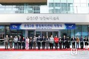 미담타임스 정주환 기자 | 파주시는 지난 4일 운정3동 주민들의 오랜 숙원이었던 운정3동 행정복지센터 개청식을 개최하고 본격적인 운영에 들어갔다. 이날 개청식에는 김경일 파주시장을 비롯해 박대성 파주시의회 의장 등 시·도의원, 유관기관 단체장, 주민 등 100여 명이 참석해 운정3동 행정복지센터의 새 출발을 함께 축하했다. 운정3동 행정복지센터는 총사업비 180억 원을 투입해 연면적 4,423㎡, 지하 1층에서 지상 4층 규모로 건립됐다. 민원실, 주민자치 프로그램실, 회의실, 상담실, 청소년자유공간 쉼표 7호점 등 다양한 주민 편의 공간을 갖추고 있으며, 특히 ‘청소년자유공간 쉼표 7호점’은 운정3동 주민들의 요구를 적극 반영해 마련된 특화시설이다. 배성진 공공건축과장은 “운정3동 행정복지센터 개청은 단순한 청사 신설을 넘어, 주민 삶의 질을 높이는 생활밀착형 행정의 시작”이라며 “시민과 가장 가까운 곳에서 소통하고 공감하는 행정 실현에 중요한 역할을 할 것으로 기대한다”라고 밝혔다. 이날 개청식은 경과보고, 기념사 및 축사, 색줄 자르기, 청사 순회 순으로 진행됐으며, 참석자들은 새롭게 마련된