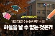 미담타임스 조혜리 기자 | 하늘을 날 수 없는 것들은? ■ 전면 통제대상 · 모든 항공기 이륙 금지 (비행 중 항공기 → 3km 이상 상공에서 대기) · 헬기 · 경량항공기 그리고 초경량 비행장치(드론 포함) 모두 STOP! * 예외: 비상·긴급 항공기 영어 듣기평가에 방해가 되는 '항공기소음 최소화' ■ 언제 통제되나요? 11월 13일(목) 13:05~13:40(총 35분) ※ 듣기평가 전·후 5분 포함 수험생에게 조용한 하늘을! 국민 여러분의 협조를 부탁드립니다.