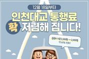 미담타임스 조혜리 기자 | 12월 18일부터 인천대교 통행료 확 저렴해 집니다! - 승용차기준 5,500원 → 2,000원(약 63% 인하!) ■ 언제부터, 얼마나 달라지나요? 2025년 12월 18일 00시 부터 시행 인천대교 통행료 평균 인하폭은 63%… ■ 차종별 통행료 한눈에 보기 · 경차: (인하 전) 2,750원 → (인하 후) 1,000원(▼1,750원) · 소형: (인하 전) 5,500원 → (인하 후) 2,000원(▼3,500원) · 중형: (인하 전) 9,400원 → (인하 후) 3,500원(▼5,900원) · 대형: (인하 전) 12,200원 → (인하 후) 4,500원(▼7,700원) ■ 차종 한눈에 구별하기 (경차) · 배기량 1,000cc 미만 · 길이 3.6m·너비 1.6m·높이 2.0m 이하 (소형) · 승용차, 16인승 이하 승합차 · 2.5톤 미만 화물차 · 2축 차량 / 윤폭 279.4mm 이하 (중형) · 17인승 이상 버스 · 2.5톤 이상~10톤 미만 화물차 · 2축 차량 / 윤폭 279.4mm 초과 (대형) · 10톤 이상 대형 트