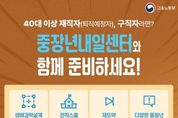 미담타임스 조혜리 기자 | 40대 이상 재직자(퇴직예정자), 구직자라면? 중장년내일센터와 함께 준비하세요! - 생애경력설계 프로그램 : 직업역량, 가치관 분석 등 미래 경력 대안 탐색 지원 - 전직스쿨 프로그램 : 변화 관리 및 취업·전직 가능성 제시 - 재도약 프로그램 : 구직의욕 고취 및 구직 스킬 향상 지원 - 다양한 중장년 정책 안내 : 일경험, 지원금, 일자리 등 정보제공 · 비용 부담 ZERO! 전액 무료! · 간편한 온라인 신청 가능! 전국 38개 중장년내일센터로 오세용!