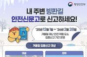 미담타임스 조혜리 기자 | 내 주변 빙판길 안전신문고로 신고하세요! '25년 12월 1일 ~ '26년 2월 28일 겨울철 재난 안전 위험 요소 집중신고 기간 운영 ■ 겨울철 집중신고 대상 (대설) 제설 미흡, 제설함 관리 불량, 시설물 파손·붕괴 위험 등 (한파) 인도 결빙, 동파 우려, 고드름 낙하, 한파 쉼터 불편 등 (화재) 비상구 물건 적치, 담배꽁초 투기, 소화시설 불량, 불법 취사·소각 등 (축제·행사) 인파 밀집 우려, 행사장 시설 파손, 안전관리 미흡 등