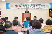 미담타임스 황명수 기자 | 대한노인회 의령군지회(지회장 장혁두) 부설 제24기 의령군노인대학(학장 하만용) 입학식이 3일 의령노인복지관 3층에서 오태완 군수와 김규찬 의령군의회의장을 비롯한 기관단체장과 60명의 신입생이 참석한 가운데 거행됐다. 장혁두 지회장은 환영사에서 “노인은 그냥 늙은 사람이고 어르신은 존경받는 사람이며 무엇보다 훌륭한 어르신은, 언제나 배워야 한다고 생각하는 사람”이라고 강조하고 “우리 학생들은 배움의 열정을 갖고 노인대학에서 더 많은 것을 체험하고 즐기면서 행복한 대학생활을 하시기 바란다” 인사했다. 오태완 군수는 격려사에서 “시니어스포츠센터를 5월 중에 착공하여 내년엔 노인들이 좀더 넓고 편리한 공간에서 노후를 즐길수 있도록 하겠다”며 “의령군은 노인 일자리 확대와 경로당 환경개선 등 다양한 노인복지 정책으로 어르신들이 가장 살기 좋고 평안한 복지고장을 만들어 나가겠디고 밝혔다. 의령군노인대학은 총 24주 학사일정으로, 매주 1회 금요일 오전 10시부터 2시간 강의를 진행하며 노인건강과 안전, 교양과 역사, 춤과 노래까지 다양한 분야의 전문가를 초빙하여 진행된다. 올해 신