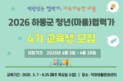 미담타임스 황명수 기자 | 하동군은 지역 활력 회복과 청년 일자리 창출을 위해 추진 중인 ‘청년(마을)협력가 양성과정’의 제4기 교육생을 오는 4월 28일까지 모집한다고 밝혔다. 청년(마을)협력가는 마을 현장에 파견되어 주민과의 교류를 바탕으로 마을의 활력을 높이는 현장 전문가로써 활동한다. 주요 역할은 △지역 프로그램 기획 및 운영 △마을 활성화 방안 제안 △지역자원 기반 상품 제작 및 마케팅 지원 △주민 이야기 및 명소 발굴을 통한 스토리텔링 등이다. 하동군은 지난 2023년부터 해당 사업을 꾸준히 추진해왔으며, 현재까지 총 16명의 협력가를 양성했다. 2026년 현재 11명의 협력가가 마을 곳곳에서 주민들과 연대하며 지역의 변화를 이끌어내고 있다. 이번 제4기 과정은 15명 내외의 교육생을 모집하며, 교육은 5월 7일부터 6월 25일까지 매주 목요일 악양생활문화센터에서 진행된다. 교육 수료생 중 성적이 우수한 5~7명은 실제 마을로 파견되어 협력가로서 본격적인 활동을 시작하게 된다. 수강 희망자는 오는 4월 28일까지 놀루와를 통해 유선으로 접수할 수