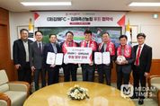 미담타임스 황명수 기자 | 김해FC가 김해축협과 손을 잡고 2026시즌의 힘찬 레이스를 시작한다. 김해FC는 31일 오전 10시 김해시청에서 구단주 홍태용 김해시장과 김해축협 송태영 조합장이 참석한 가운데 공식 후원 협약식을 개최했다. 김해축협은 ‘천하1품’ 한우와 ‘산들에참포크’ 등 장관상을 휩쓴 명품 브랜드를 가진 국내 축산업 발전의 선두주자로 국민 건강을 책임지고 있는 지역 대표 금융·축산 기관이다. 이번 협약은 김해축협의 새 슬로건인 ‘든든한 축산 동반자, 김해축협’ 정신을 바탕으로 지역 상생의 의미가 크다. 김해축협은 김해FC의 공식 파트너로서 구단의 안정적인 운영을 돕고, 김해FC는 경기력을 통해 김해축협의 브랜드 가치를 높이는 ‘윈-윈(Win-Win)’ 전략을 펼친다. 송태영 조합장은 “우리 시 첫 프로축구단의 탄생에 시민들의 기대가 큰 만큼, 팬들의 뜨거운 열기에 부응하기 위해 지원을 결심했다”며“김해축협이 그 여정에 동행하게 되어 기쁘고 앞으로 김해FC가 승승장구할 수 있도록 아낌없는 응원과 지원을 이어가겠다”고 말했다. 홍태용 시장은 “김해축협은 우리 시가 축산업 도시로 성장하는