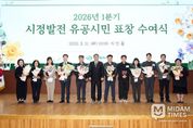 미담타임스 황명수 기자 | 창원특례시는 31일 오전 10시 시청 시민홀에서 ‘2026년도 1분기 시정발전 유공시민 표창 수여식’을 개최했다. 이날 수여식에서는 지역사회와 시정발전을 위해 공헌한 시민 93명이 수상의 영예를 얻었다. 특히, 삼성창원병원 신생아집중치료지역센터는 소중한 생명을 구한 유공 기관으로 선정되어 수여식에서 큰 박수를 받았다. 신생아집중치료지역센터는 새해 첫날, 긴급 이송 헬기에서 출산한 아이를 2개월 간 치료하고 돌보며, 안정적인 성장 환경을 제공하기 위해 최선을 다했다. 그 결과 아이는 건강한 모습으로 가족의 품으로 돌아갈 수 있었다. 또한 해군교육사령부 소속 장준우, 소성한 상사는 기술행정학교 교관으로서 전기 안전 점검 봉사활동과 재능기부를 통해 지역 공동체 발전에 이바지했다. 장금용 창원특례시장 권한대행은 “각자의 자리에서 지역 발전을 위해 봉사하신 수상자 여러분께 진심으로 감사드린다”며, “창원시는 앞으로도 묵묵히 봉사를 실천한 분들을 지원하고 격려하는 일에 최선의 노력을 다하겠다”고 말했다.