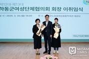 미담타임스 황명수 기자 | 하동군여성단체협의회가 지난 30일 하동군노인장애인종합복지관 4층 대강당에서 ‘제13대 회장 및 임원 취임식’을 개최하고, 새로운 도약을 위한 기반을 마련했다고 밝혔다. 이는 앞선 19일 열린 정기총회의 연장선으로, 여성단체협의회는 총회를 통해 2025년도 사업 결산과 함께 2026년도 사업계획을 논의하고, 제13대 신임 회장·임원을 선출하는 등 조직을 재정비한 바 있다. 총회 결과에 따라 임기가 만료된 제12대 이행자 회장이 그 직을 내려놓고, 뒤를 이어 하미연 신임 회장이 여성단체협의회를 이끌어가게 되었다. 이날 취임식은 회장·임원 감사패 수여, 이·취임사, 기념 촬영 등 순서로 진행됐으며, 하승철 하동군수를 비롯한 여성단체 회원, 주요 내빈 등 60여 명이 참석해 협의회의 새로운 출발을 함께 축하했다. 특히, 그간 협의회를 이끌어 온 이행자 전 회장의 헌신과 노고를 기리는 뜻깊은 자리가 마련돼 참석자들 모두 감사와 존경의 마음을 전했다. 한편, 하동군여성단체협의회는 지역 내 10개 여성단체를 대표하는 조직으로, 그동안 양성평등 문화 확산은 물론 다양한