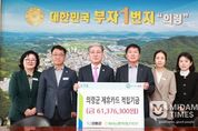 미담타임스 황명수 기자 | 경남 의령군은 지난 27일 군수실에서 NH농협은행 의령군지부 관계자 등이 참석한 가운데 ‘농협 제휴카드 적립기금 전달식’을 개최했다고 밝혔다. 이날 의령군은 NH농협은행으로부터 2025년도 제휴카드 사용에 따른 적립금 6,137만원을 전달받았다. 이번 기금은 군이 사용한 법인카드, 민간단체 보조금 카드, 공무원 복지카드 이용액의 0.1~1%가 적립된 것으로, 전년도 5,843만원 대비 9.5% 증가한 규모다. 제휴카드는 2002년 의령군과 NH농협은행, 비씨카드(주) 간 협약을 통해 도입됐으며, 이번을 포함한 누적 적립금은 약 6억8천만원에 이른다. 군은 법인카드 사용을 통해 예산 집행의 투명성과 신뢰성을 확보하는 한편, 적립된 기금을 활용해 복지사업과 지역개발 등 주요 현안 사업에 활용할 계획이다.