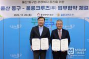 미담타임스 김준완 기자 | 울산 동구는 11월 20일 오후 2시 ㈜울릉크루즈와 업무협약을 체결하고 동구민의 관광 편의 증진과 해양관광 활성화를 위한 협력 체계를 구축했다. 동구는 이번 협약을 통해 동구 주민이 울릉도 크루즈를 이용할 때 선박 요금 할인 혜택을 받을 수 있도록 했다. 동구 주민은 주중 및 비수기에는 20%, 주말과 공휴일에는 10% 할인 혜택을 받을 수 있으며, 울릉도 육로 관광이나 독도 관광을 할인된 특가상품으로 이용할 수 있다. 동구는 이번 협약을 통해 주민들이 울릉도 여행을 편리하고 합리적인 비용으로 할 수 있을 것으로 기대한다. 동구청 관계자는 “이번 협약을 통해 동구민들이 쉽게 울릉도를 방문할 수 있을 것으로 보인다. 앞으로도 해양관광 활성화와 지역경제 발전을 위한 다양한 협력사업을 추진하겠다”라고 밝혔다.