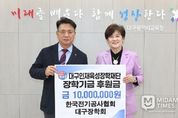 미담타임스 전해찬 기자 | 대구시교육청은 2월 23일, 한국전기공사협회 대구장학회에서 대구인재육성장학재단에 장학금 1천만 원을 기탁했다고 밝혔다. 한국전기공사협회 대구광역시회(회장 이병철)는 2011년 11월 대구장학회를 설립하여 경제적 사정이 어려운 전기관련학과 고등학생 및 대학생을 지원해오고 있으며, 지역 인재육성에 더욱 도움이 되고자 2025년에 이어 2년째 대구인재육성장학재단에 기탁하게 됐다. 이병철 회장은 “어려운 환경에서도 학생들이 재능을 키워나갈 수 있도록 지원하는데 보탬이 되길 바란다.”는 뜻을 전했고, 류석종 이사장은 “업계 발전을 위한 인재 육성 뿐 아니라, 더 나아가서 다양한 분야의 인재가 배출될 수 있도록 적극 지원하겠다.”고 했다. 강은희 교육감은 “기탁해주셔서 감사드리며, 기탁금은 어려운 학생들이 학업에 집중할 수 있도록 지원하는데 최선을 다하겠다.”며 고마움을 표시했다.