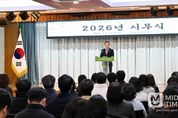미담타임스 김준완 기자 | 울산 북구는 2일 구청 대회의실에서 시무식을 열고, 본격 새해 업무를 시작했다. 이날 시무식은 공무원 헌장, 구정목표 및 구정지표 낭독으로 시작해 구청장의 신년사로 마무리됐다. 박천동 북구청장은 신년사에서 올 한해 구정방향을 설명하며 "2026년은 그동안 다져온 기반 위에서 한 단계 더 도약하는 중요한 해"라며 "멈추지 않고, 주저하지 않으며, 더 큰 미래를 향해 나아가겠다"고 강조했다.
