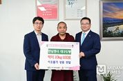 미담타임스 김교환 기자 | 대구 수성구는 지난 19일 용지사(세음사회적협동조합) 주지 동건스님과 신도들이 재난 피해 주민들을 위해 써달라며 성금 276만 원을 전달했다고 밝혔다. 용지사 주지 동건스님과 신도들은 2022년 성금 300만 원 및 백미, 2023년 200만 원, 2024년 224만 원을 기부하는 등 매년 꾸준히 나눔을 실천해왔으며, 올해에도 사회공헌 활동의 일환으로 성금을 기탁했다. 수성구는 기탁받은 성금을 재난 피해 주민들의 상실감을 위로하고 긴급한 지원이 필요한 곳에 사용할 계획이다. 김대권 수성구청장은 “관내 어려운 이웃들을 위해 따뜻한 마음을 모아주셔서 감사하다”며 “뜻깊은 성금으로 이웃들이 더 나은 삶을 살아갈 수 있도록 최선을 다하겠다”고 전했다.